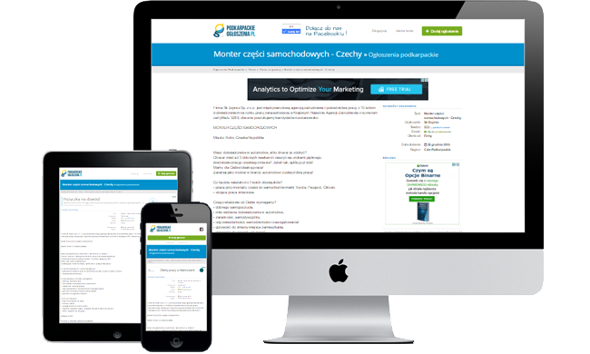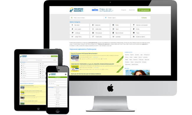 We are the authors of the regional advertisement portal for the inhabitants of the Podkarpackie region. The scope of work included all phases of creating: logo creation, graphic design, and advanced system to support the portal.