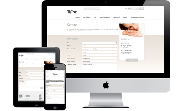 In cooperation with Beachhead, we've created a new web portal for the Dutch cosmetic brand TRIND. The scope of work included page coding to HTML5/CSS3 and the implementation to the Expression Engine platform. The site was also provided with a responsive version designed for mobile phones and tablets.